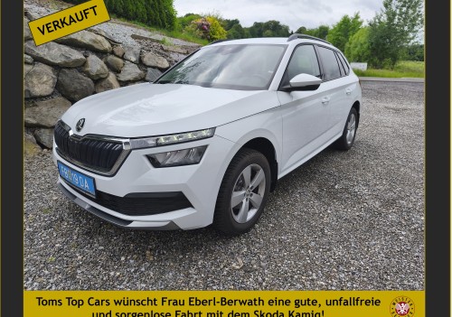 Toms Top Cars wünscht Frau Körbler eine gute, unfallfreie und sorgenlose Fahrt mit dem Skoda Kamiq!