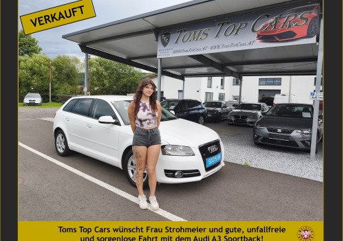 Toms Top Cars wünscht Frau Griebichler eine gute, unfallfreie und sorgenfreie Fahrt mit dem Audi A3 Sportback!