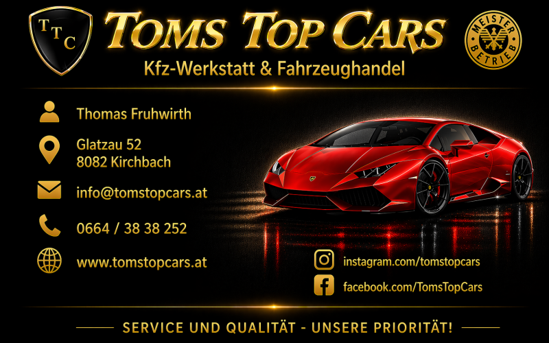 Unser KFZ-Handelsunternehmen besteht bereits seit 2008. Damals wurde es von Thomas Fruhwirth gegründet, welcher bis heute der Geschäftsführer von Toms Top Cars ist. Unser Firmensitz befindet sich in der Marktgemeinde Kirchbach.