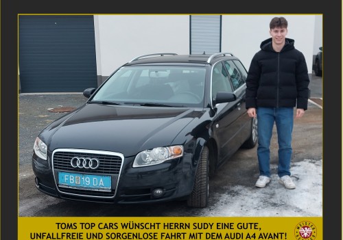 Toms Top Cars wünscht Herrn Sundl eine gute, unfallfreie und sorgenfreie Fahrt mit dem Audi A4 Avant!